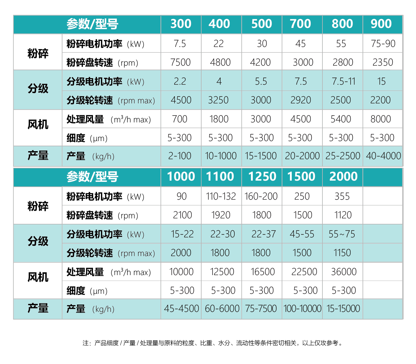 粉碎分级一体化,通过调整分级轮获得理想的产品粒度,适用于D50:2~45μm之间的产品粉碎。
